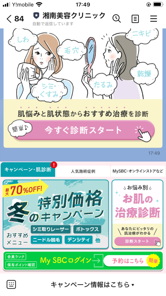 ライン登録しているのですがキャンペーンも多くてタイミングが合えばお安く施術ができます!