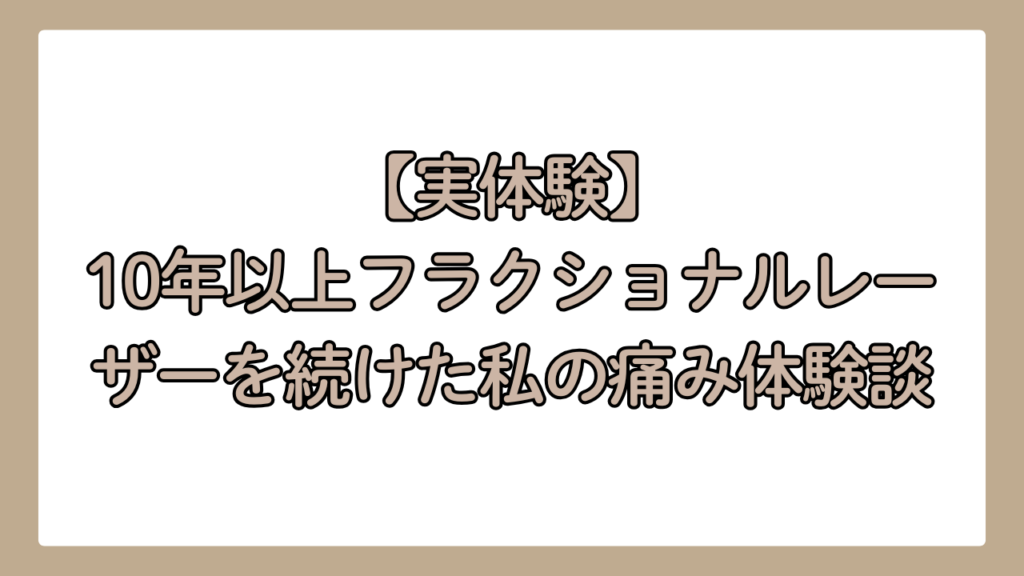 ここからは、私自身が10年以上にわたってCO2フラクショナルレーザーを続けてきた体験をお話しします。麻酔なしで受けていた時期、麻酔ありに切り替えた理由、そして実際の痛みの感じ方まで、包み隠さずお伝えします。