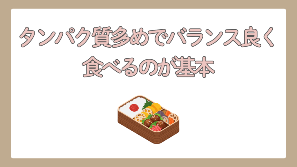 私が実践したのは「タンパク質多めでバランス良く食べる」という方法。
